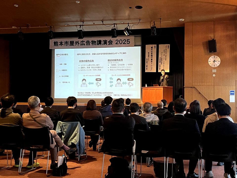 2026年1月16日に開催された「熊本市屋外広告物講演会2025」に弊社執行役員の加藤誠也が登壇いたしました。